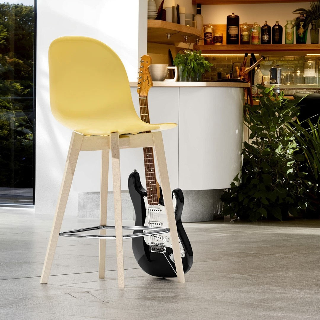 Respaldo ergonómico de polipropileno en varios colores, reposapiés metálico y base de madera, este banco es ideal para quienes buscan funcionalidad sin renunciar al diseño italiano.