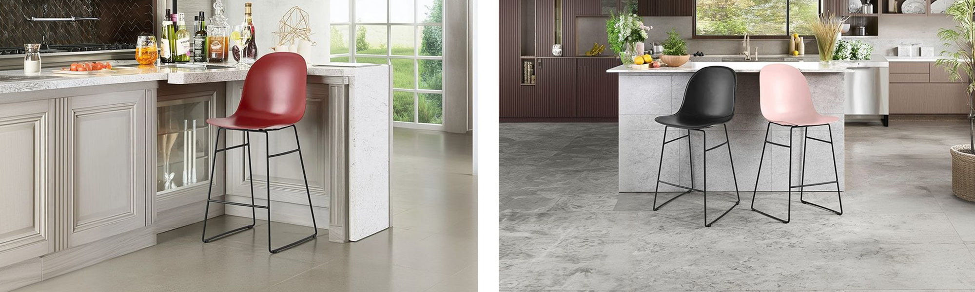El banco bajo Academy de Connubia combina una base metálica solida y un asiento ergonómico que ofrece comodidad real, incluso en usos prolongados. Su diseño envolvente y bien proporcionado se adapta al cuerpo con naturalidad, convirtiendolo en el aliado perfecto para tu barra de cocina.