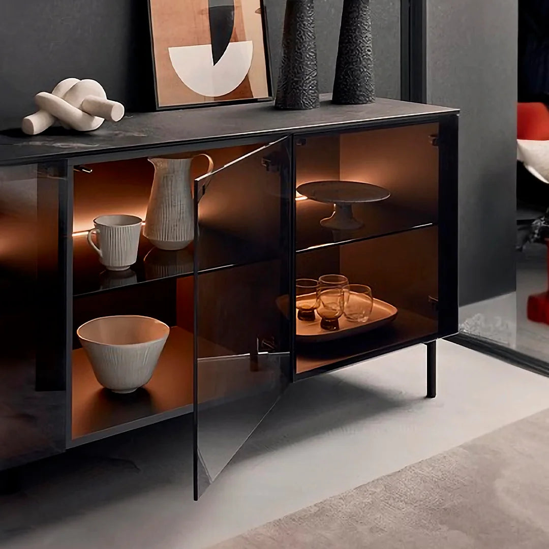Secret destaca por su combinación de estructura de madera lacada y cubierta cerámica, un sello distintivo del diseño italiano contemporáneo. Este mueble refleja una tendencia en alza: materiales resistentes, duraderos y con alto valor estético. Ideal para comedores modernos, su presencia ligera y minimalista guarda una gran capacidad interior. Perfecta para quienes desean una pieza sobria pero impactante.