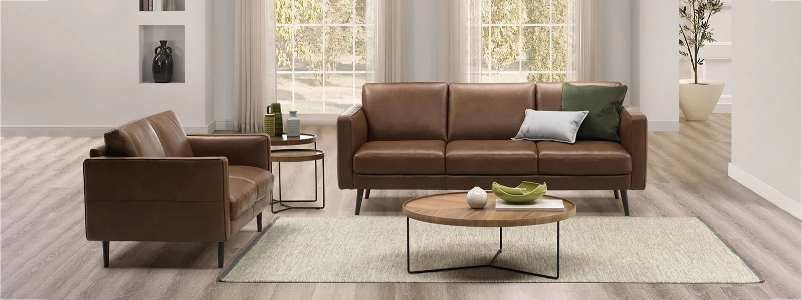 Sofá Amorevole Natuzzi en piel color Piedra de mar
