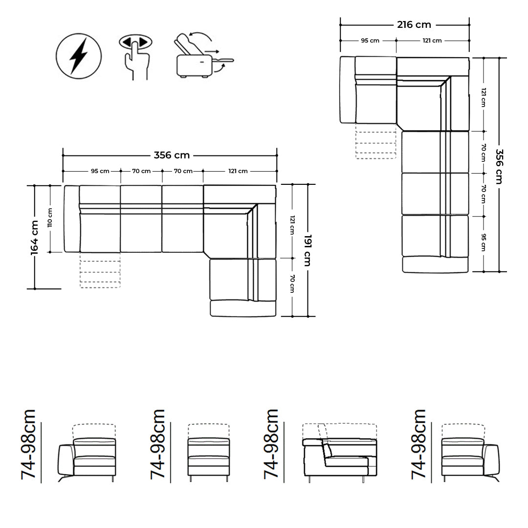 Las puntadas superiores individuales contribuyen a una línea esbelta, lo que hace que este esquinero destaque agradablemente en el interior doméstico. El diseño de movimiento con cabecera y reposapiés reclinables hacen que cada momento que pases en este esquinero sea una experiencia de relajación inmersiva y fuera del tiempo.