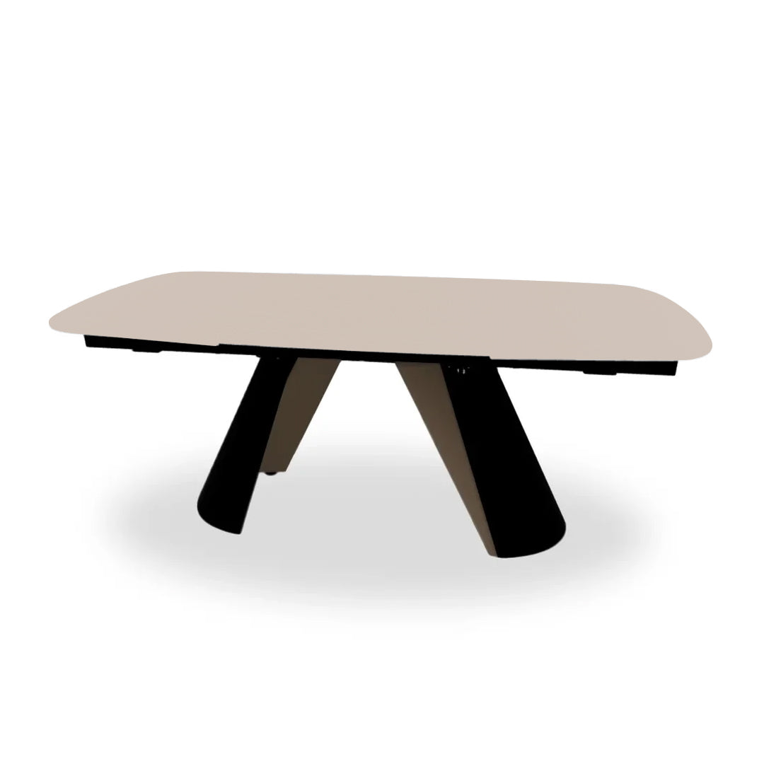 CS4132-S 200 La mesa APIAN, de elegantes proporciones, es la expresión de un enfoque de diseño atento a la arquitectura del proyecto y a su realización con materiales cuidadosamente trabajados. La ligereza de su aspecto se inspira en el tema de la lámina de metal que se curva y se inclina dibujando la base caracterizada por un trazo nítido y fuerte con una tapa extensible que, gracias a su mecanismo patentado, se extiende hasta 3 metros de longitud. La banda perimetral de la tapa retoma el tono de la estructura de la base, que revela como detalle la doble chapa de metal pintada, creando un interesante juego de luces que ilumina una zona que está normalmente en la sombra. APIAN lo tiene todo para constituir un verdadero elemento sorpresa en cualquier proyecto de interiorismo.