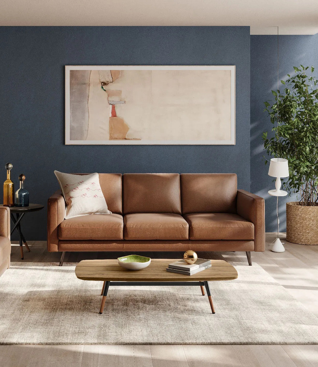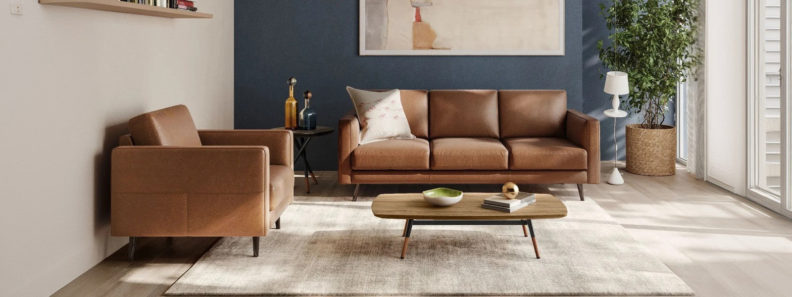 Bordes acabados con preciosa piel. Lo suficientemente compacto como para adaptarse a espacios pequeños, espacioso y bien acolchado para estar muy cómodo: este modelo da en el clavo en todos los aspectos. Un motivo más: los cojines con respaldo incorporado te permiten mantener el aspecto limpio y elegante que deseas sin tener que mullir o combiar de posición los cojines.