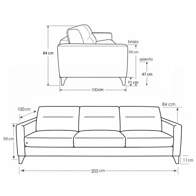 MEDIDAS Sofá Largo: Largo: 205 cm Profundidad: 100 cm Altura: 84 cm